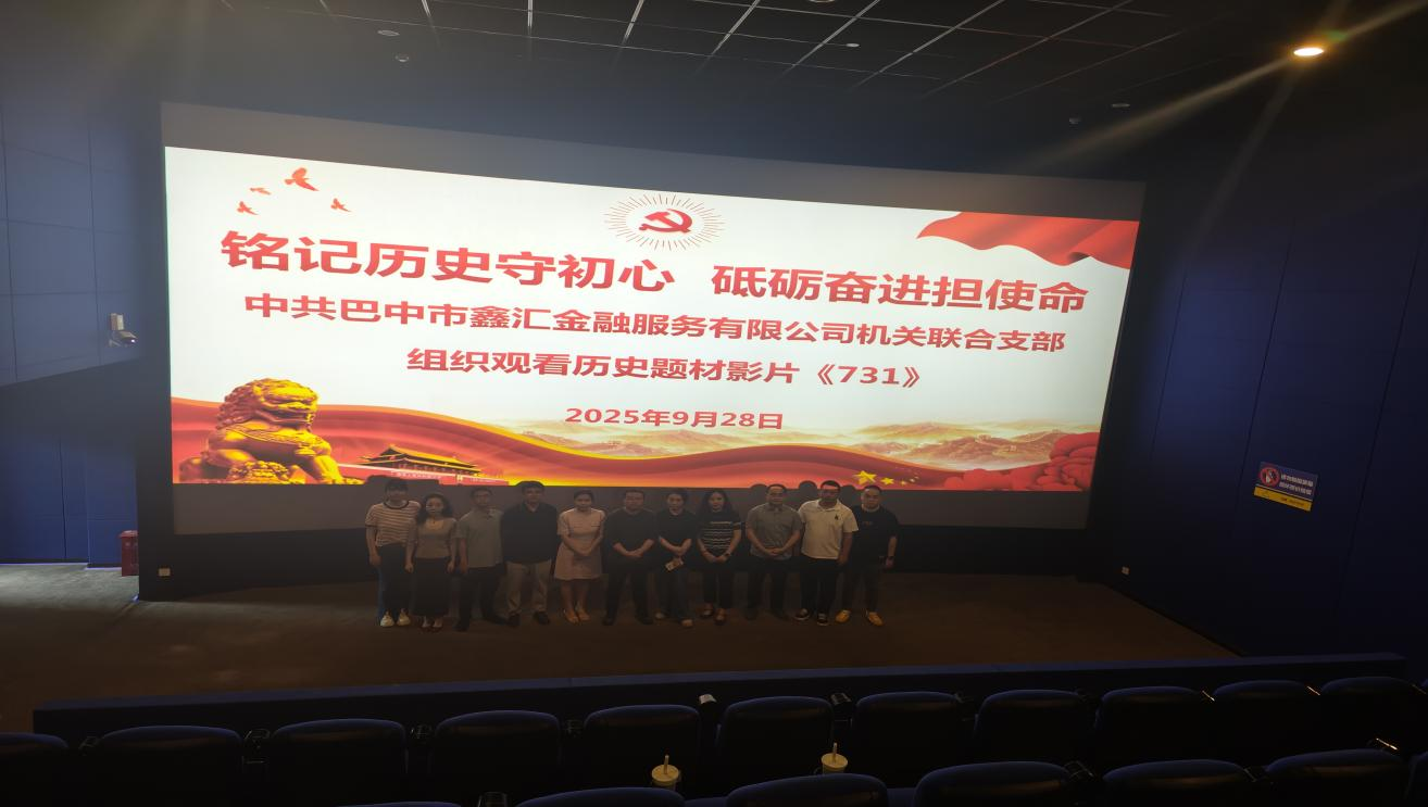 為深入推進(jìn)黨史學(xué)習(xí)教育常態(tài)化長效化,深刻緬懷革命先烈,弘揚愛國主義精神,筑牢支部黨員理想信念根基,9月28日,中共巴中市鑫匯金融服務(wù)有限公司機(jī)關(guān)聯(lián)合支部組織全體黨員開展了以“銘記歷史守初心 砥礪奮進(jìn)擔(dān)使命”為主題的黨日活動,集中觀看了愛國主義教育題材電影《731》。